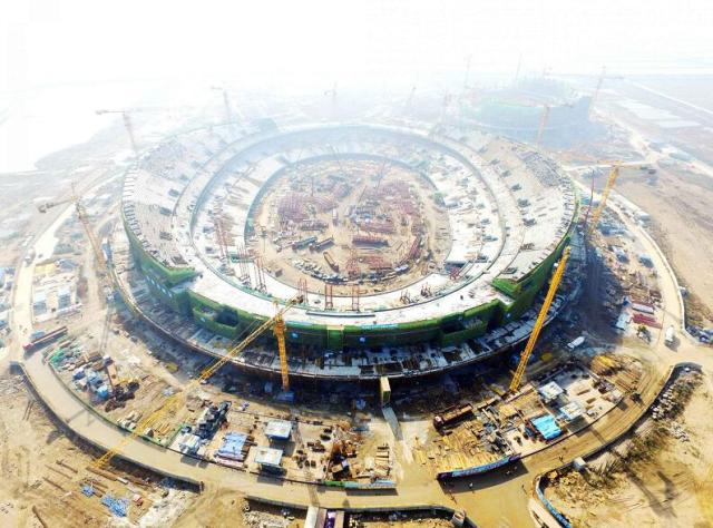 2016年7月18日,“海之沙”体育场进行第一次混凝土浇筑,仅用了111天,2016年11月5日,四个月,就完成体育场主体结构封顶,这样的建设速度刷新了国内同类工程主体施工建设记录,保证了“海之沙”体育场的按时竣工。